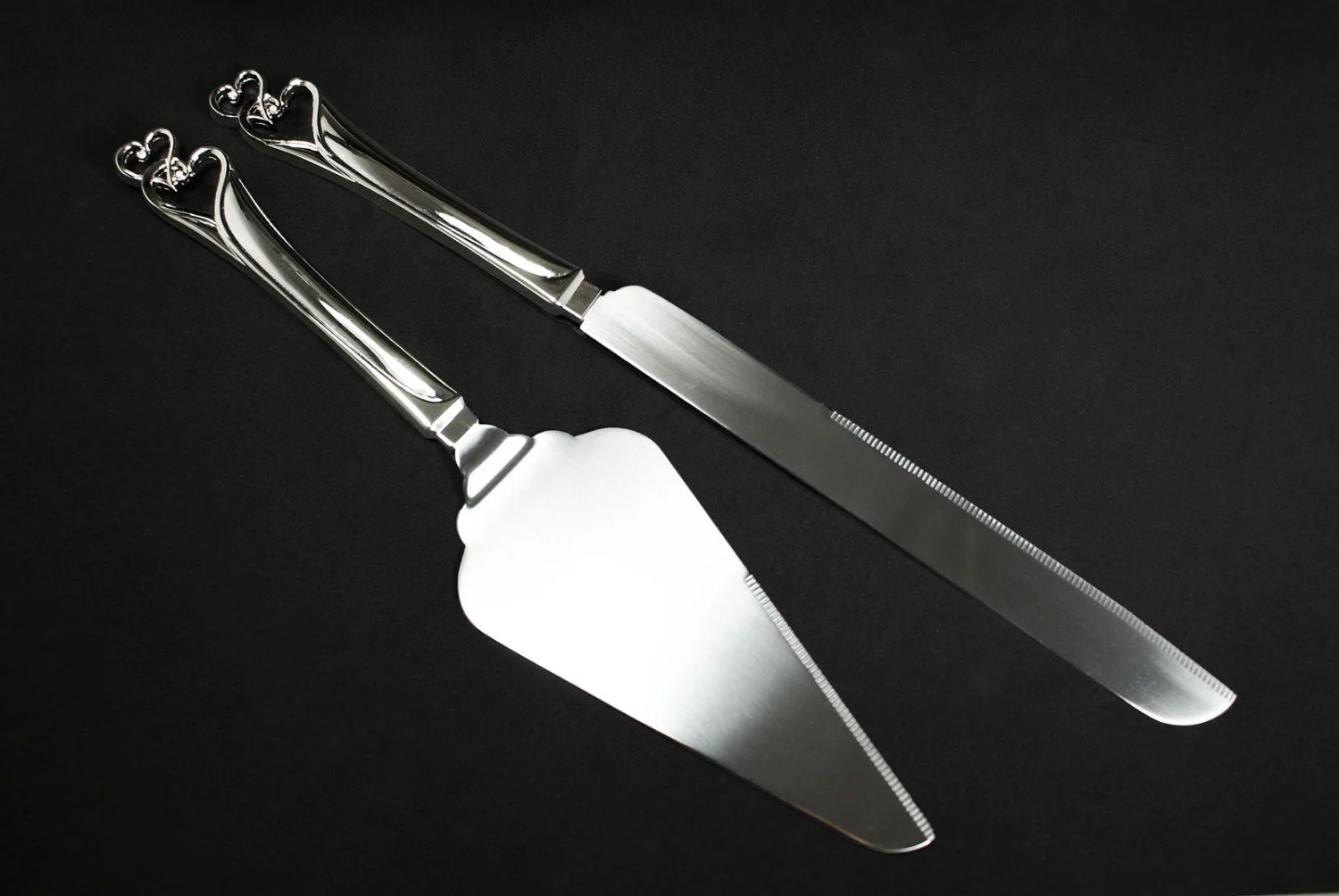 Double Heart Cake Knife Set with Diamonds with Engraving Personalized